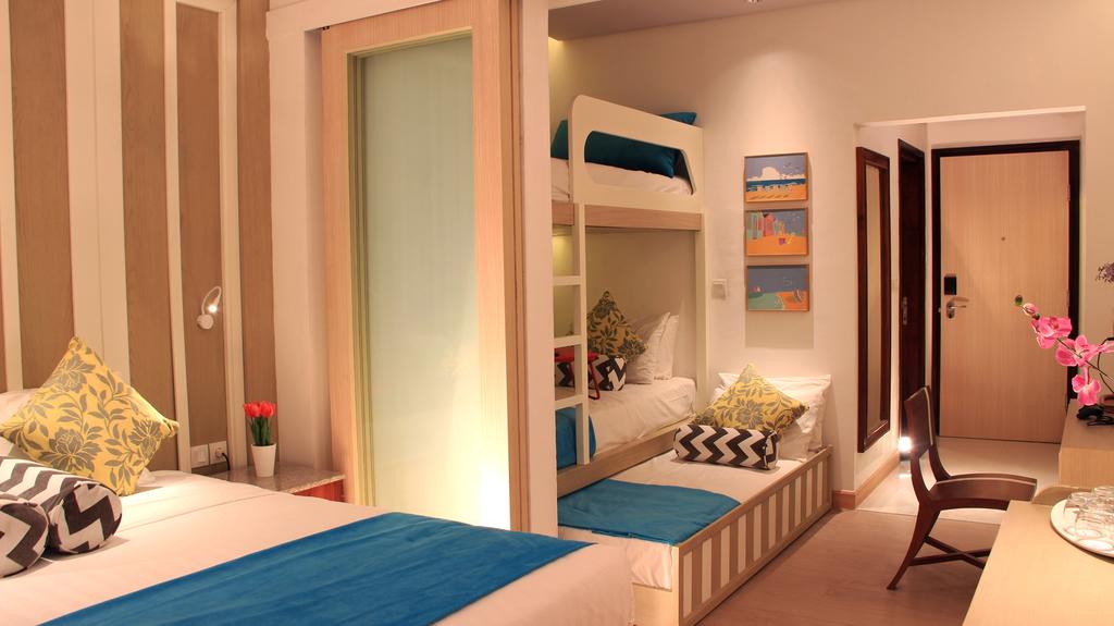 Красиво обзаведените стаи в хотелски комплекс Grand Mirage Resort & Thalasso Bali са климатизирани и разполагат с плоскоекранен телевизор със сателитни програми, кът за сядане, сейф, минибар и самостоятелна баня с вана, душ, безплатни тоалетни принадлежности, чехли и халати. Има също балкон с изглед към градината или океана.
