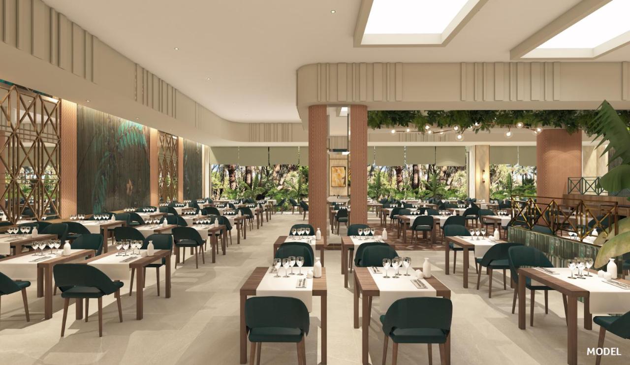Гостите могат да избират между джуниър сюити с изглед градина, страничен изглед море или директен изглед море, както и Swim-Up.