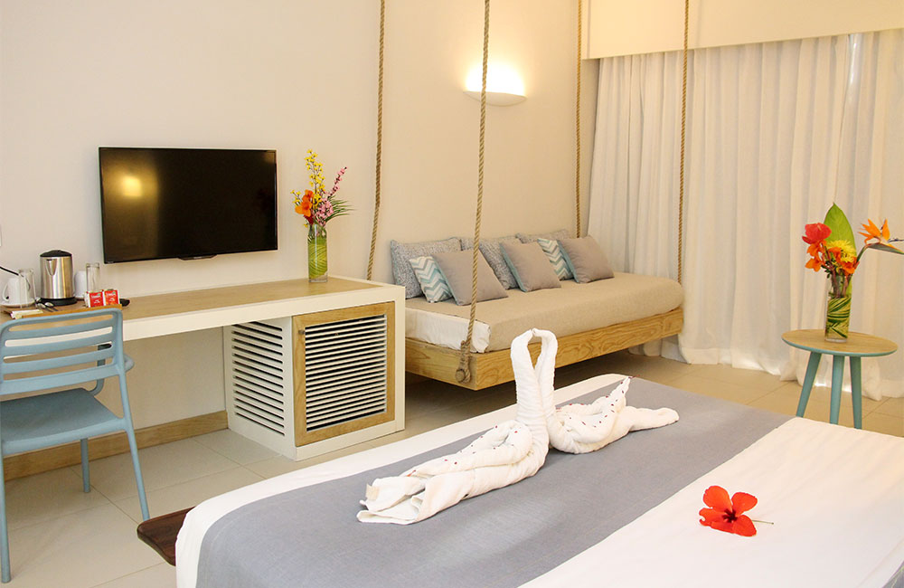 Хотелът разполага с общо 150 стилно и модерно обзаведени стаи в приятни меки тонове, от които Superior Rooms (30 кв.м), Deluxe Rooms (40 кв.м), Ocean Front Rooms (30 кв.м), Bungalows с 1, 2 и 3 спални, кухненски бокс и дневна (65, 80 и 120 кв.м). Всички стаи са оборудвани с: индивидуален климатик, телефон, телевизор с плосък екран и сателитна телевизия, вентилатор на тавана, Wi-Fi (безплатно), мини бар, сет за кафе и чай, електронен сейф (безплатно), баня с душ, сешоар, ютия и дъска за гладене и адаптери при поискване, балкон или тераса.