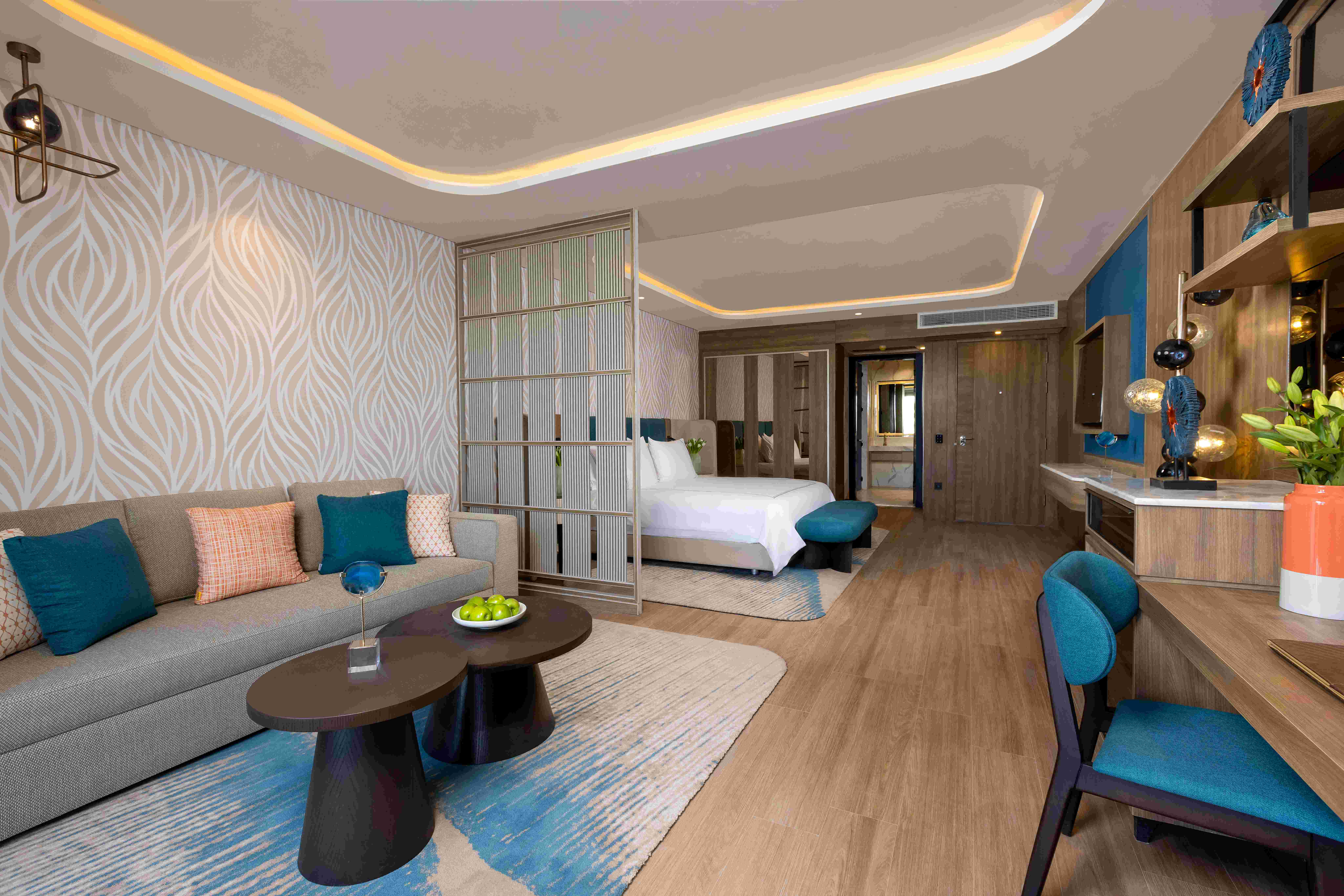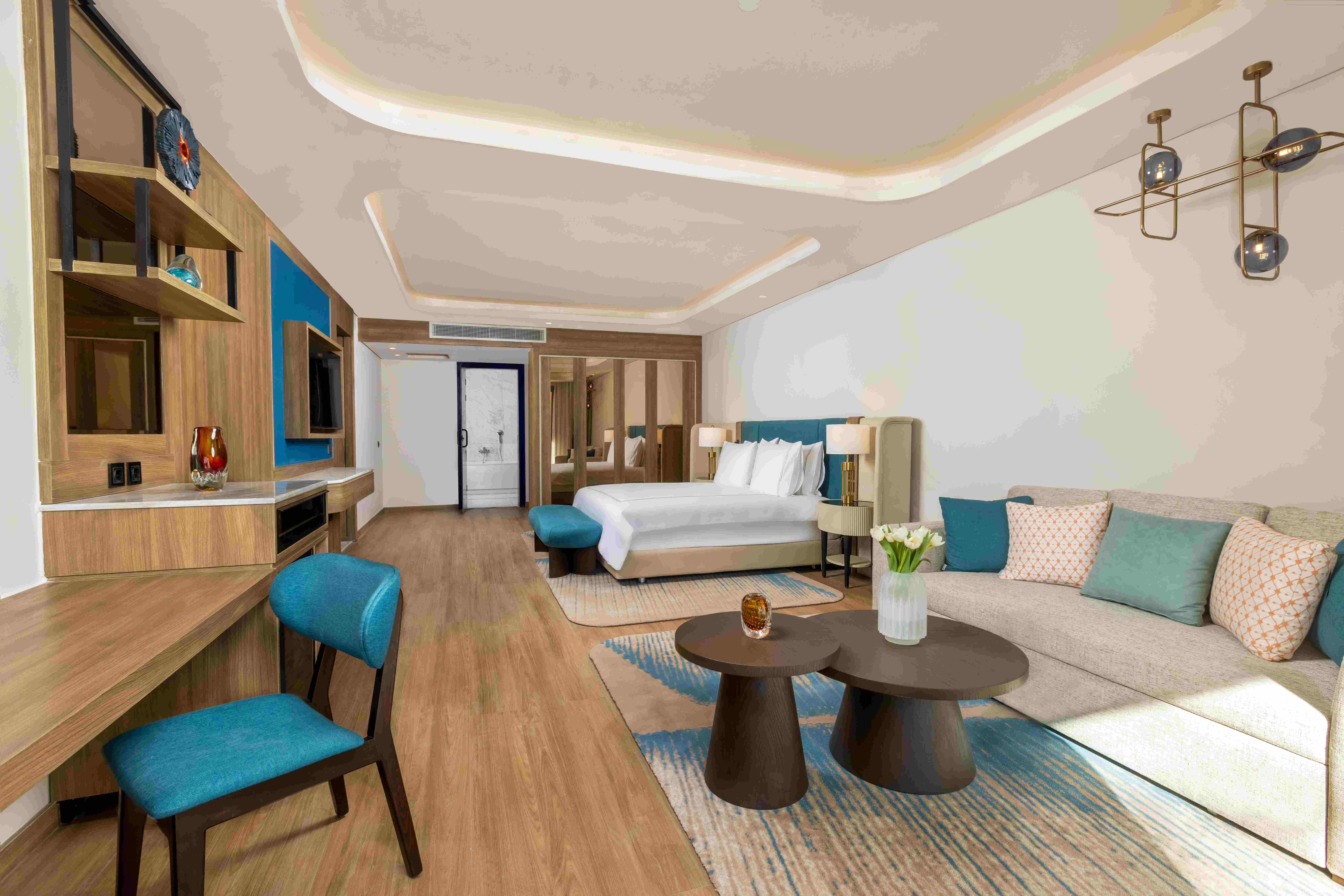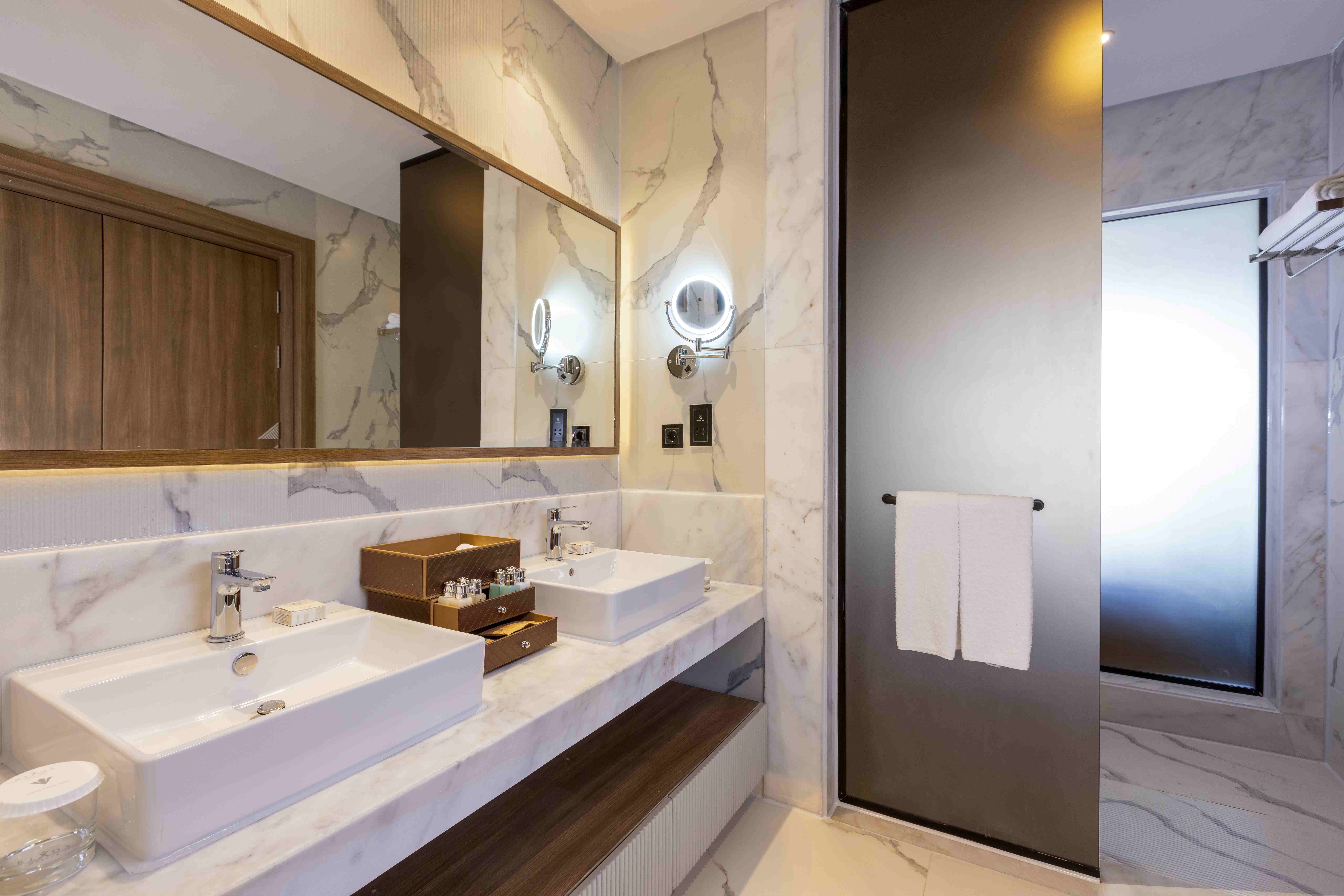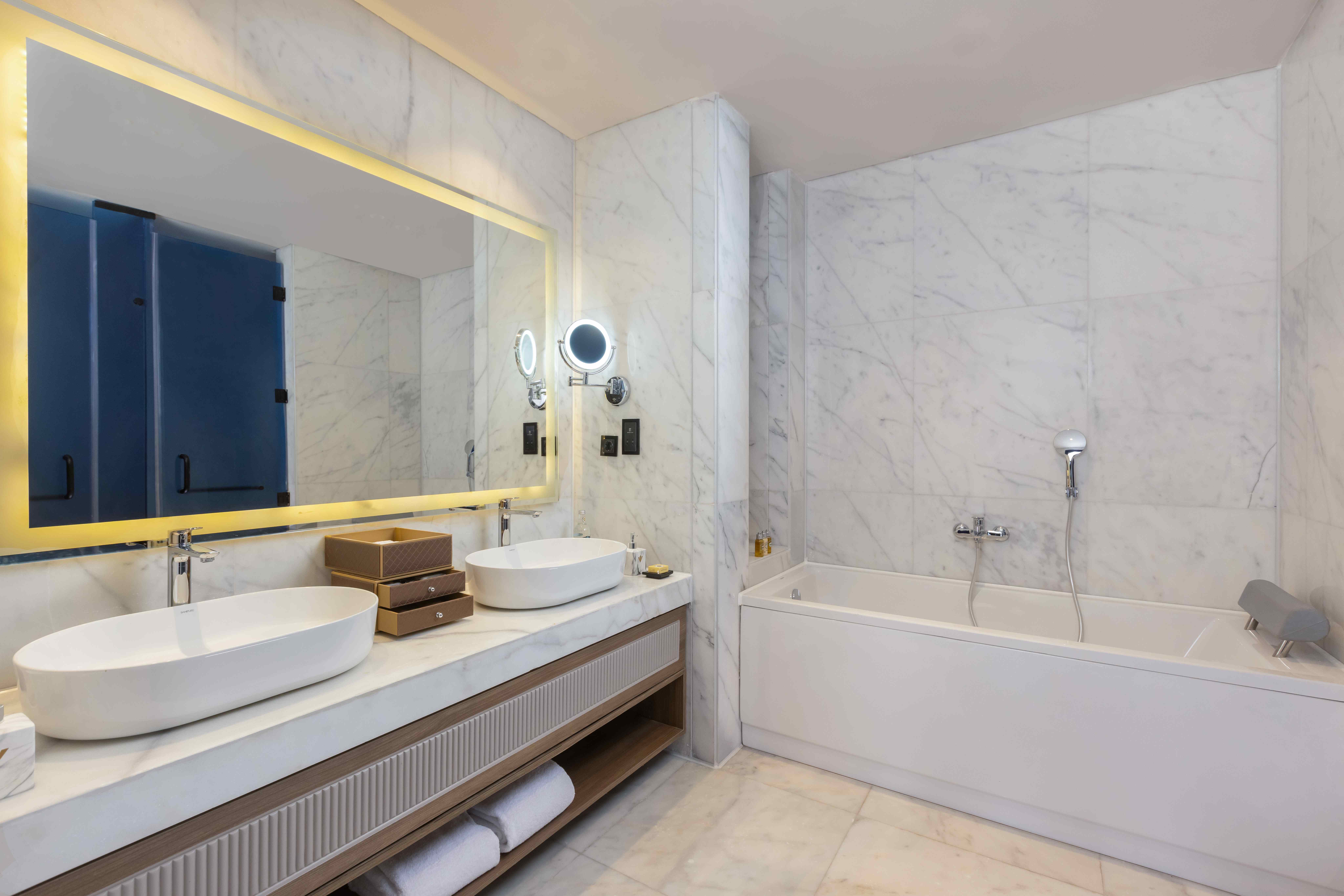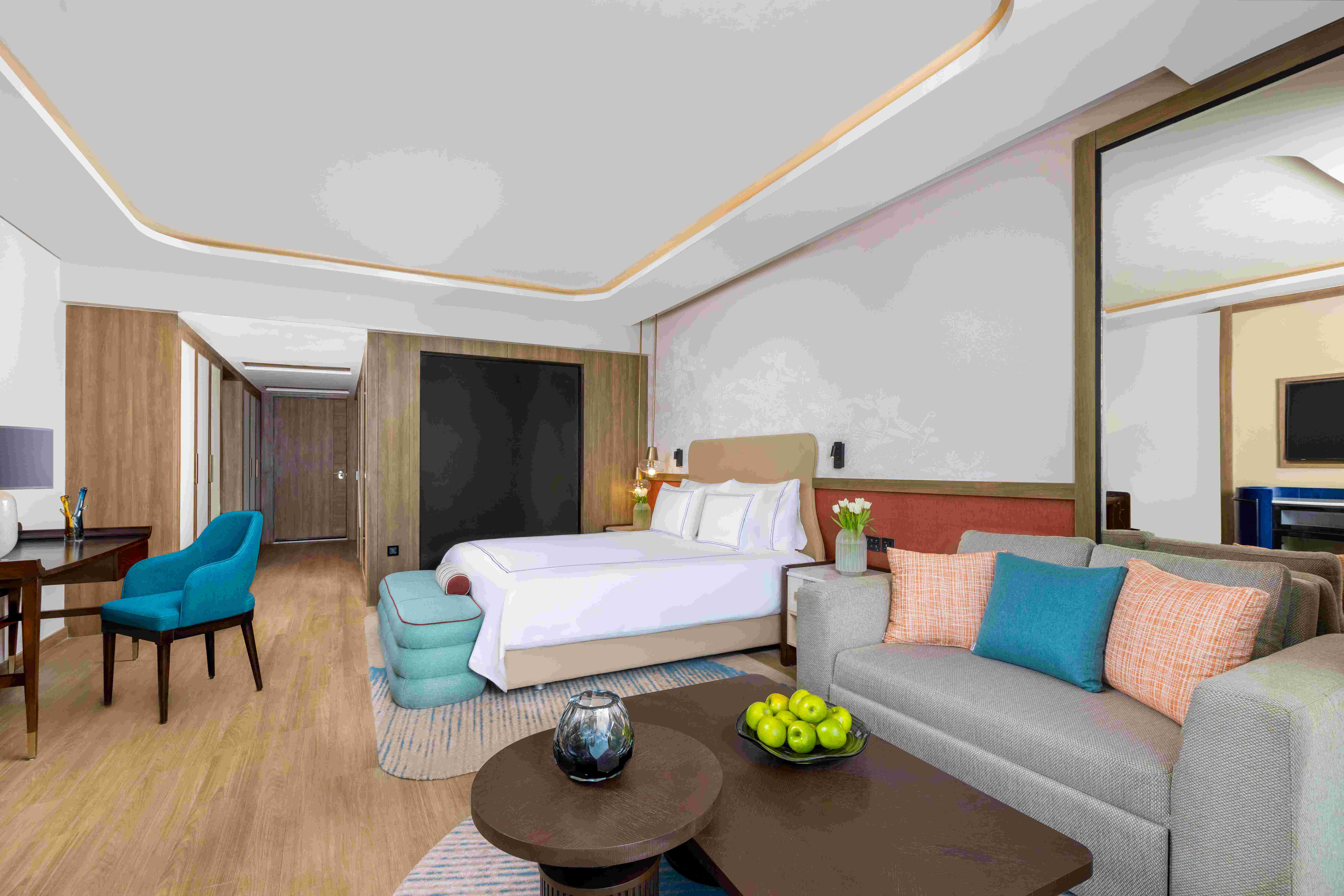 Всички стаи са оборудвани с климатик, телевизор, телефон, баня с душ или вана, сешоар, сет за чай/кафе, минибар (безплатен, зарежда се ежедневно), сейф (безплатен), халати и чехли, балкон или тераса. Почистване на стаите и смяна на кърпите – всеки ден, смяна на спалното бельо – няколко пъти седмично.