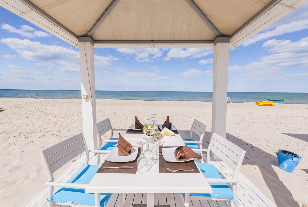 Собствен, пясъчен плаж, на първа линия. Чадъри, шезлонги и матраци на плажа и при басейна - безплатно. Плажни кърпи - безплатно, срещу депозит.